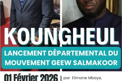 Le mouvement Geew Salmakoor procédera au lancement officiel de sa coordination départementale de Koungheul le samedi 1er février 2026 à partir de 15 heures, au terrain de basket de Koungheul. Cett...